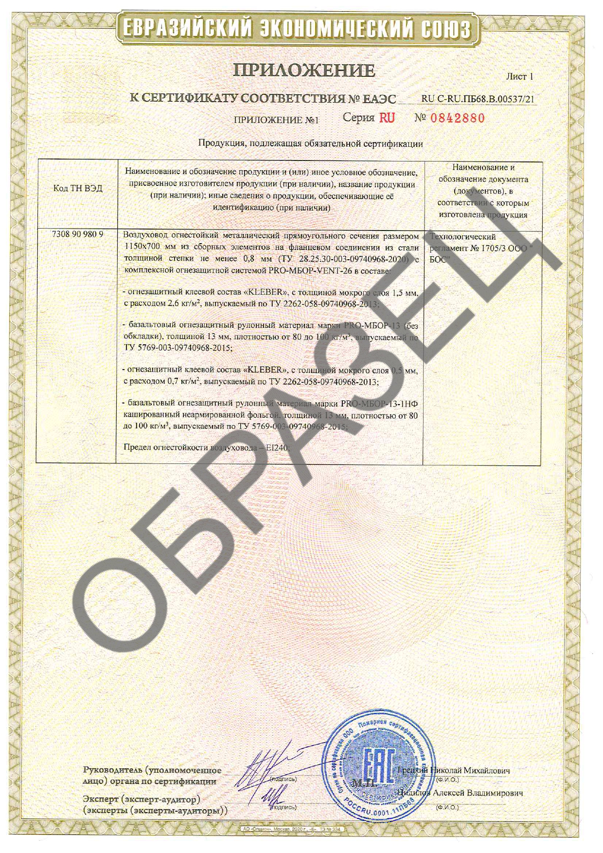 - Огнезащитная система PRO-МБОР-VENT (с пределом огнестойкости EI 30 – 240) двухкомпонентная комплексная система огнезащиты, состоящая из рулонного базальтового материала МБОР и огнезащитного клеевого состава Kleber.