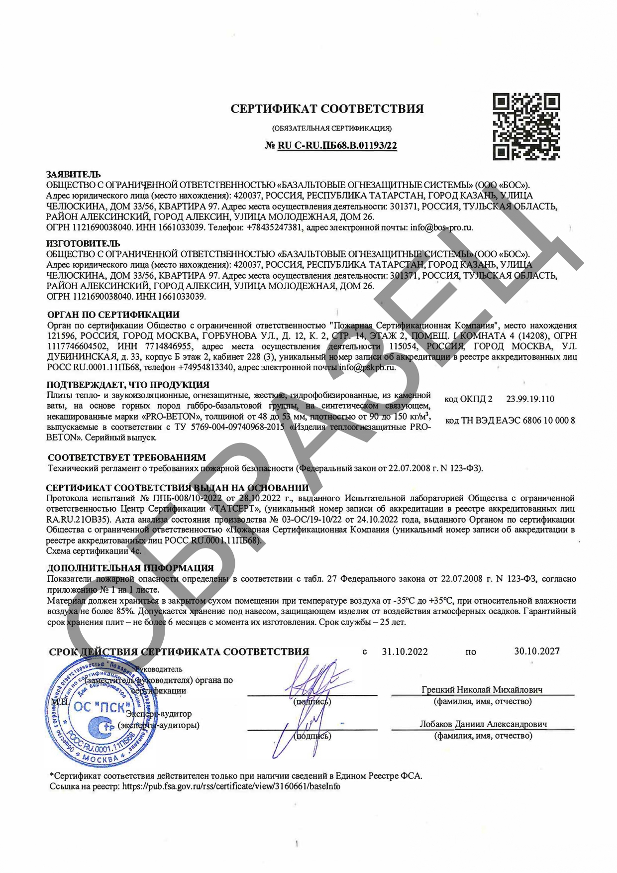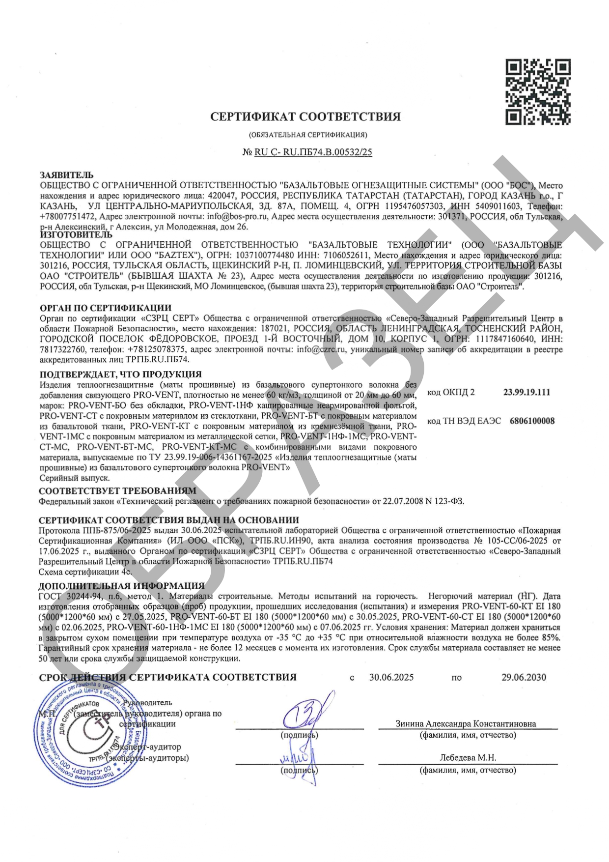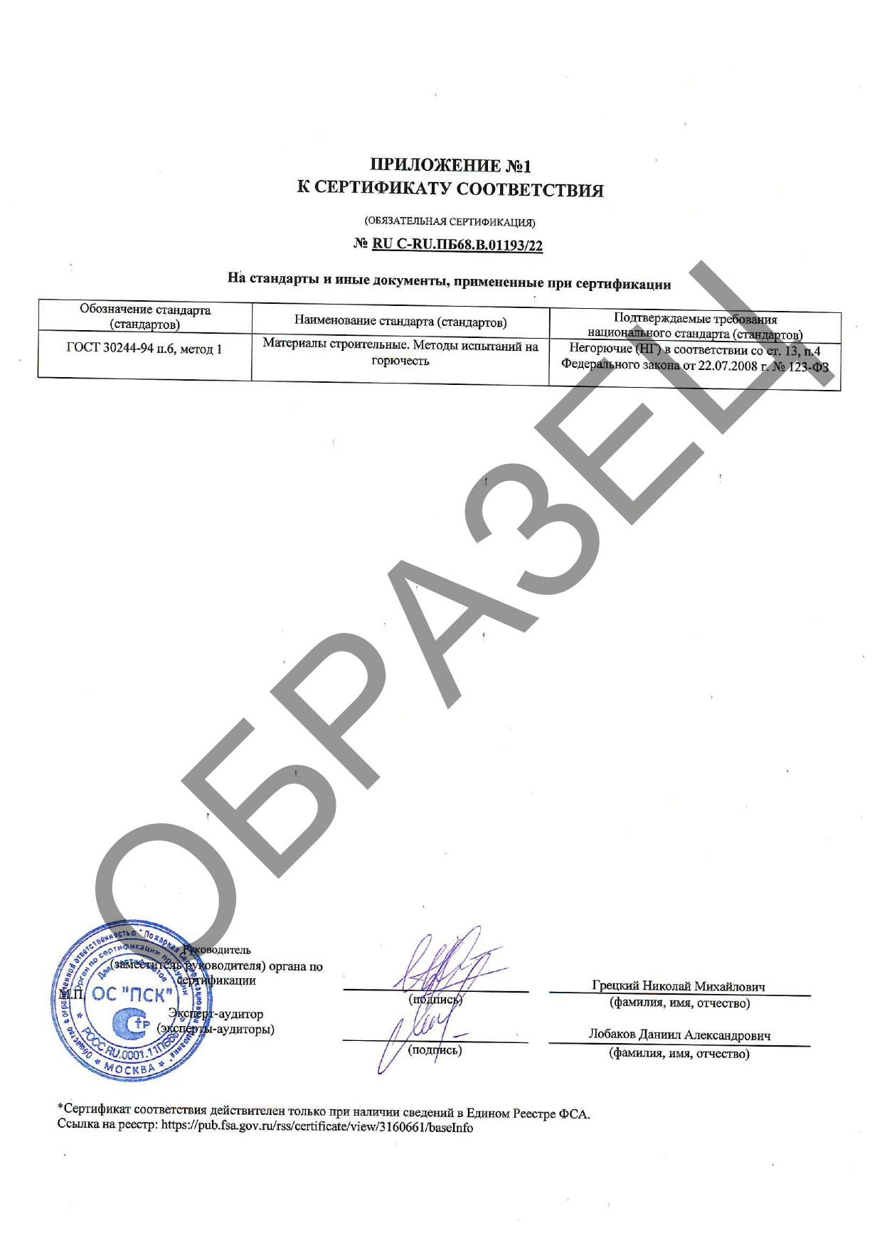 Сертификаты соответствия о требованиях пожарной безопасности испытаний на огнестойкость по ГОСТ 53299-2013.