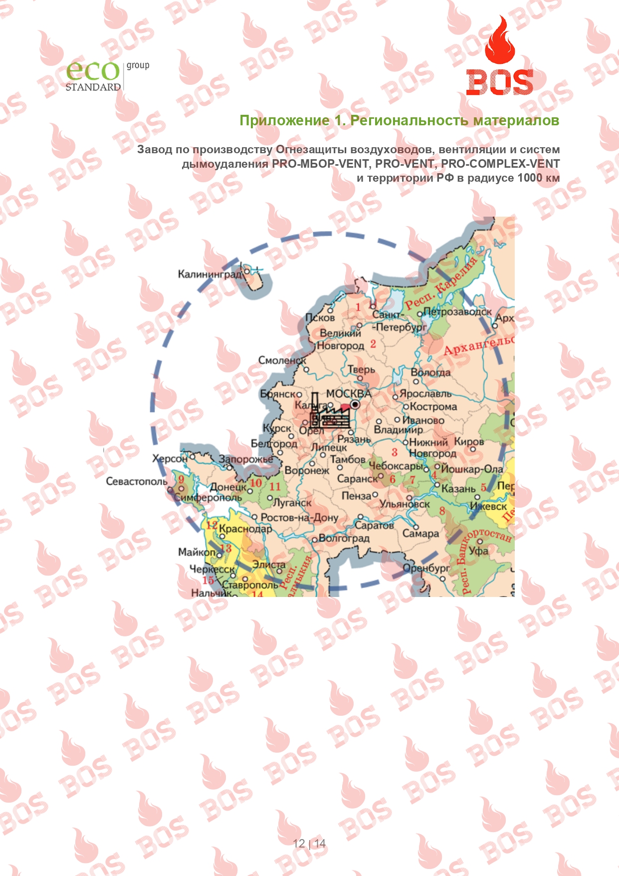 Сертификат соответствия о требованиях пожарной безопасности на огнестойкость (предел огнестойкости R180) на систему PRO-COMPLEX-VENT.