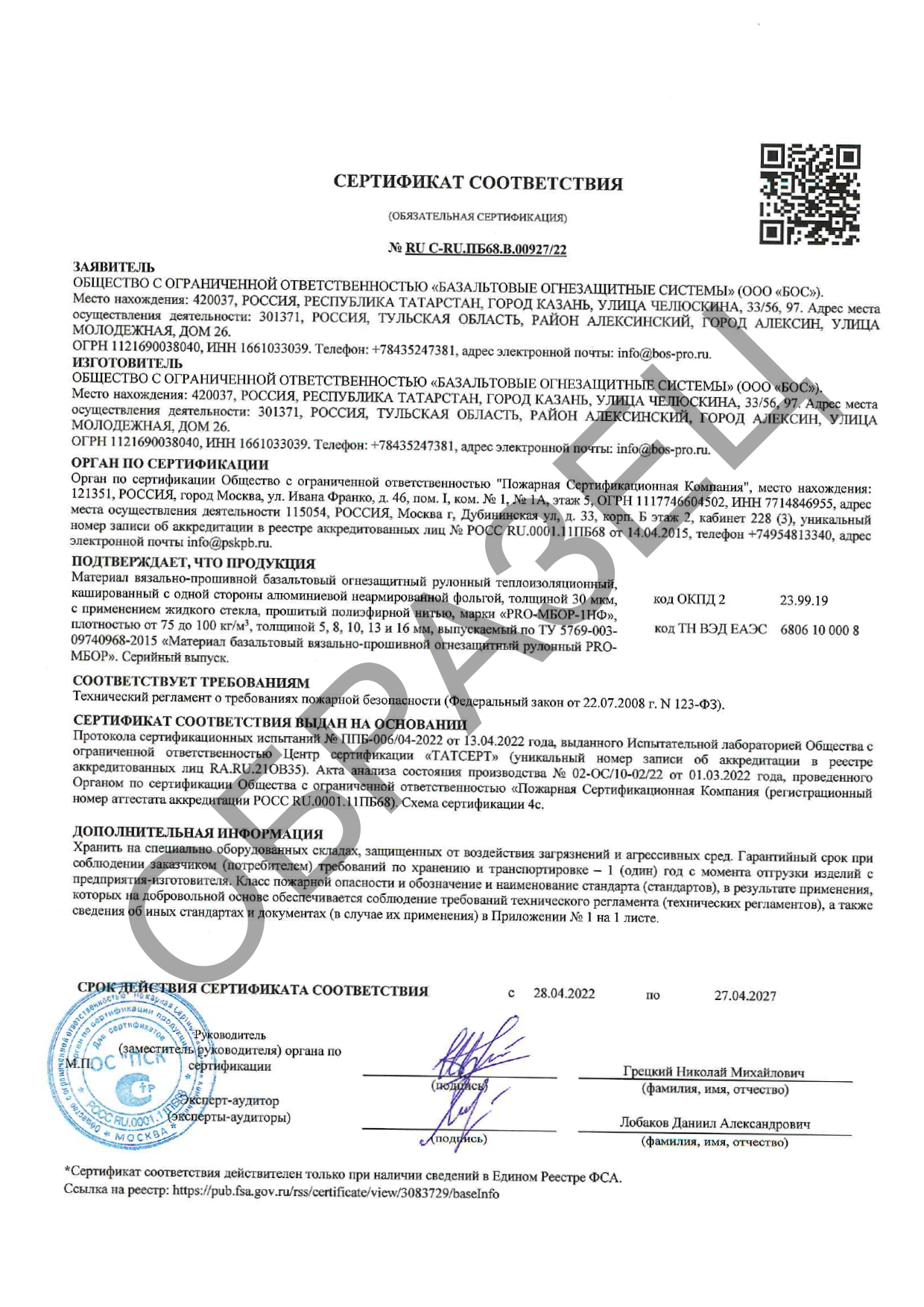 Компания «БОС» (Базальтовые Огнезащитные Системы) успешно производит и продает покрытия, сделанные из тончайших базальтовых нитей, спрессованных и хаотично переплетенных между собой. Такой материал, сохранивший все достоинства природного минерала базальта, обладает исключительной устойчивостью к высоким температурам, экологически безопасен, хорошо предотвращает потери тепла, а также «гасит» вибрацию и шум. Кроме того, базальтовые огнезащитные покрытия компании БОС долговечны, хорошо сопротивляются механическим воздействиям, устойчивы к агрессивных химическим веществам и влаге. Стоимость же таких материалов, при их высоком качестве, вполне доступна для самых широких кругов заказчиков. Поэтому наша продукция пользуется заслуженной популярностью.